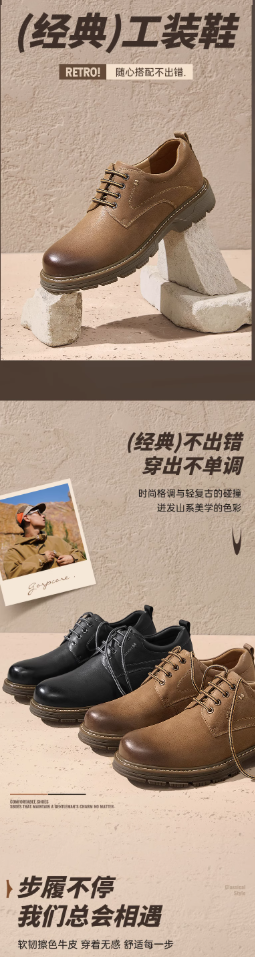 德国骆驼动感皮鞋男款2025新款牛皮工装鞋马丁鞋商务爸爸休闲皮鞋