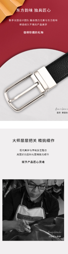 法国Vanmbo梵慕帛皮带男士真皮腰带潮流纯牛皮无牙内穿自动扣裤带
